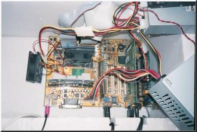 Látható hogy a vízpumpa egyenesen a proci hűtőbordájára van irányítva. (Celeron